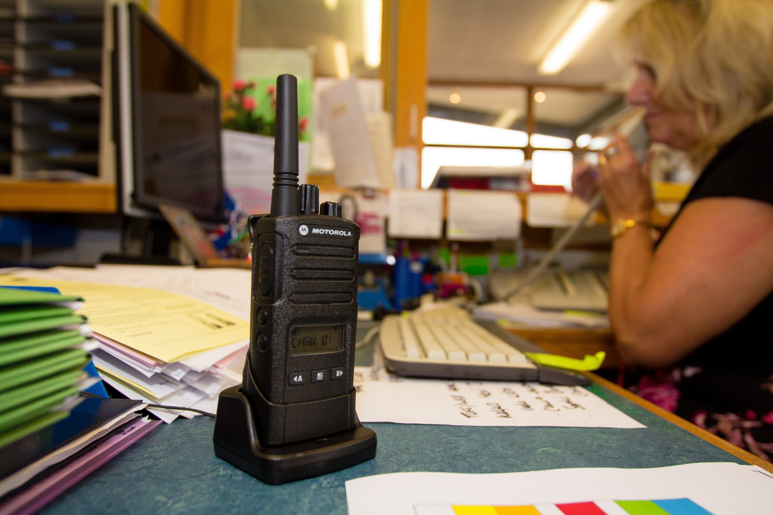 To talk with different workgroups quickly, change channels at the touch of a button or with the channel selector knob.